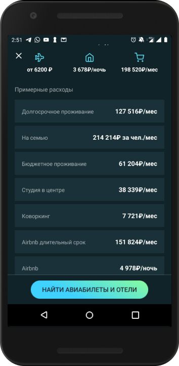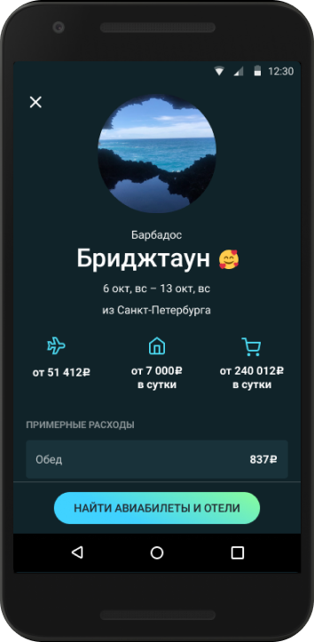 3. В базе детализация расходов есть не у всех городов. Если для города недоступна детализация, то откроется сокращенная версия карточки, с ценой только за перелёт. Детализация точно есть для следующих городов: Будапешт, Ереван, Бриджтаун (Барбадос), Прага, Венеция. Чтобы детализация сработала максимально корректно, лучше чтобы на фото была изображена узнаваемая местность/достопримечательность в пределах города (а не в его области).